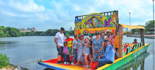 10:00 pick-up → Chambaculera boat (live champeta, drums) through Ciénaga de la Virgen → beach fish-fry (mojarra, patacón) → return mid-afternoon