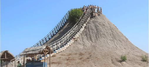 Morning Volcán Totumo mud-bath → rinse in lagoon → optional mangrove canoe glide near Galerazamba's pink salt flats